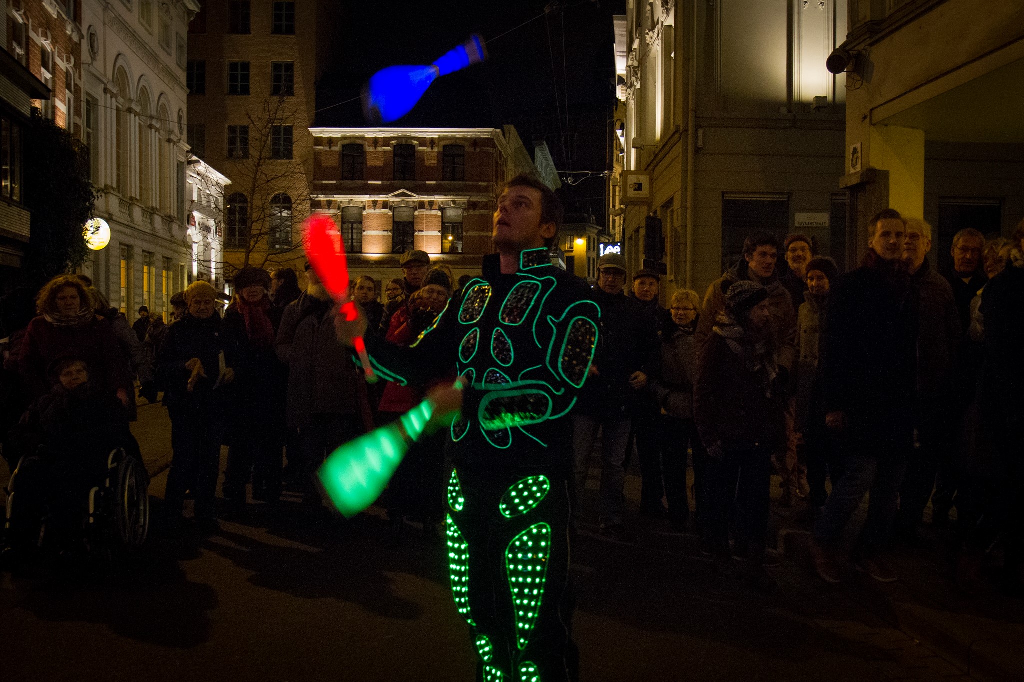 De lichtgevende steltloper werkt wonderen op uw avond-evenementen. Met zijn lichtgevende kegels baant hij zonder moeite zijn weg door de gasten. Aan de allerkleinsten deelt hij zelfs fluorescerende glowsticks uit! Deze act kan ook in duo uitgevoerd worden.